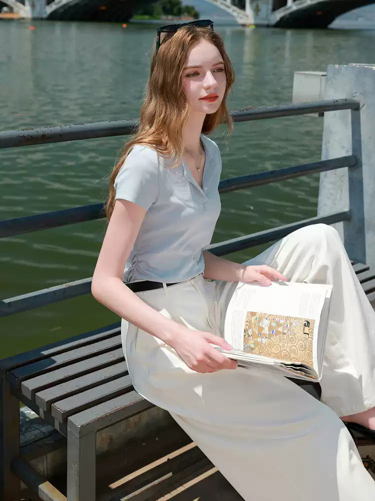 Blue Collared Fitted Short-Sleeve Top