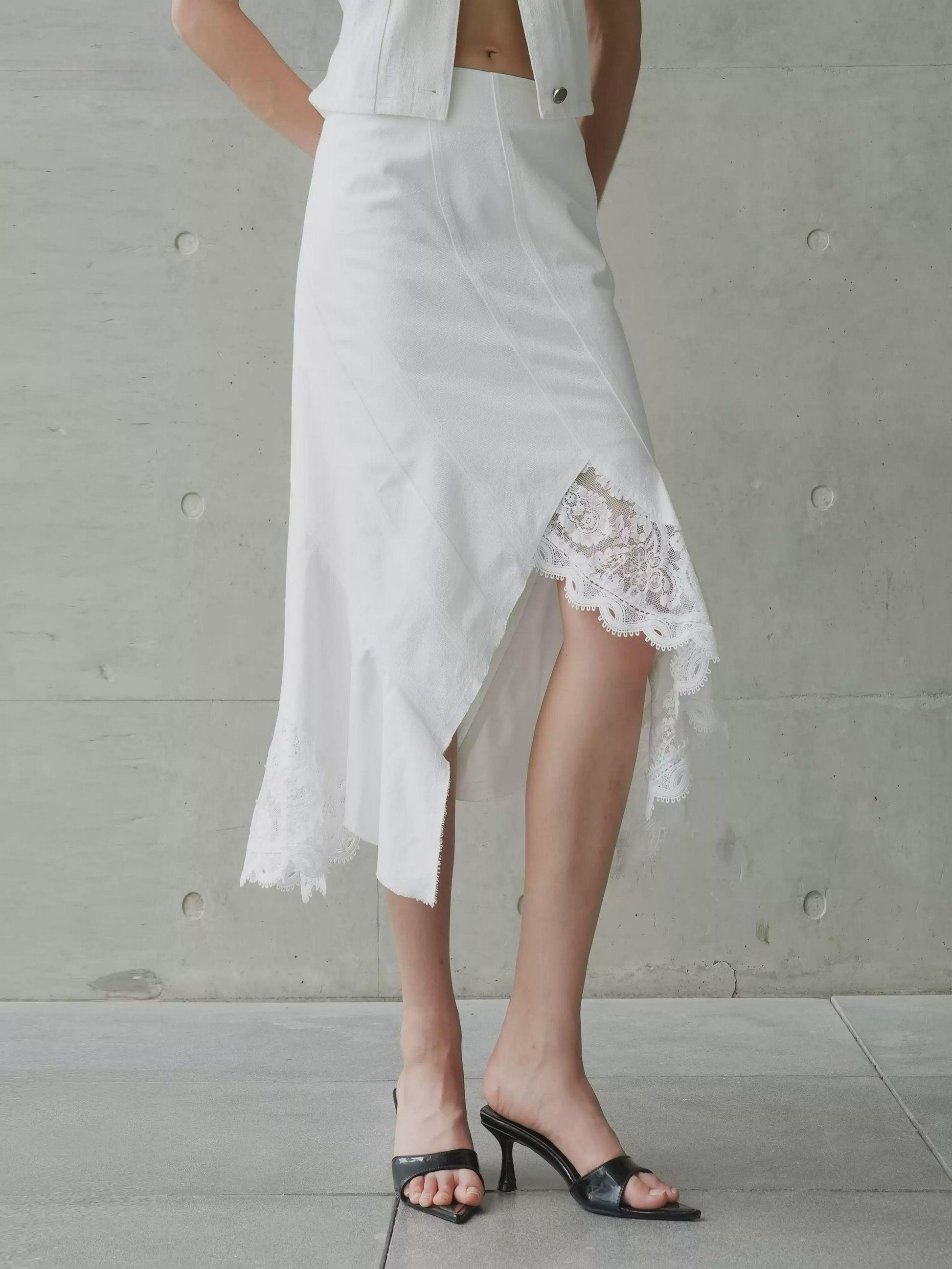 Lace-Trim Denim Skirt