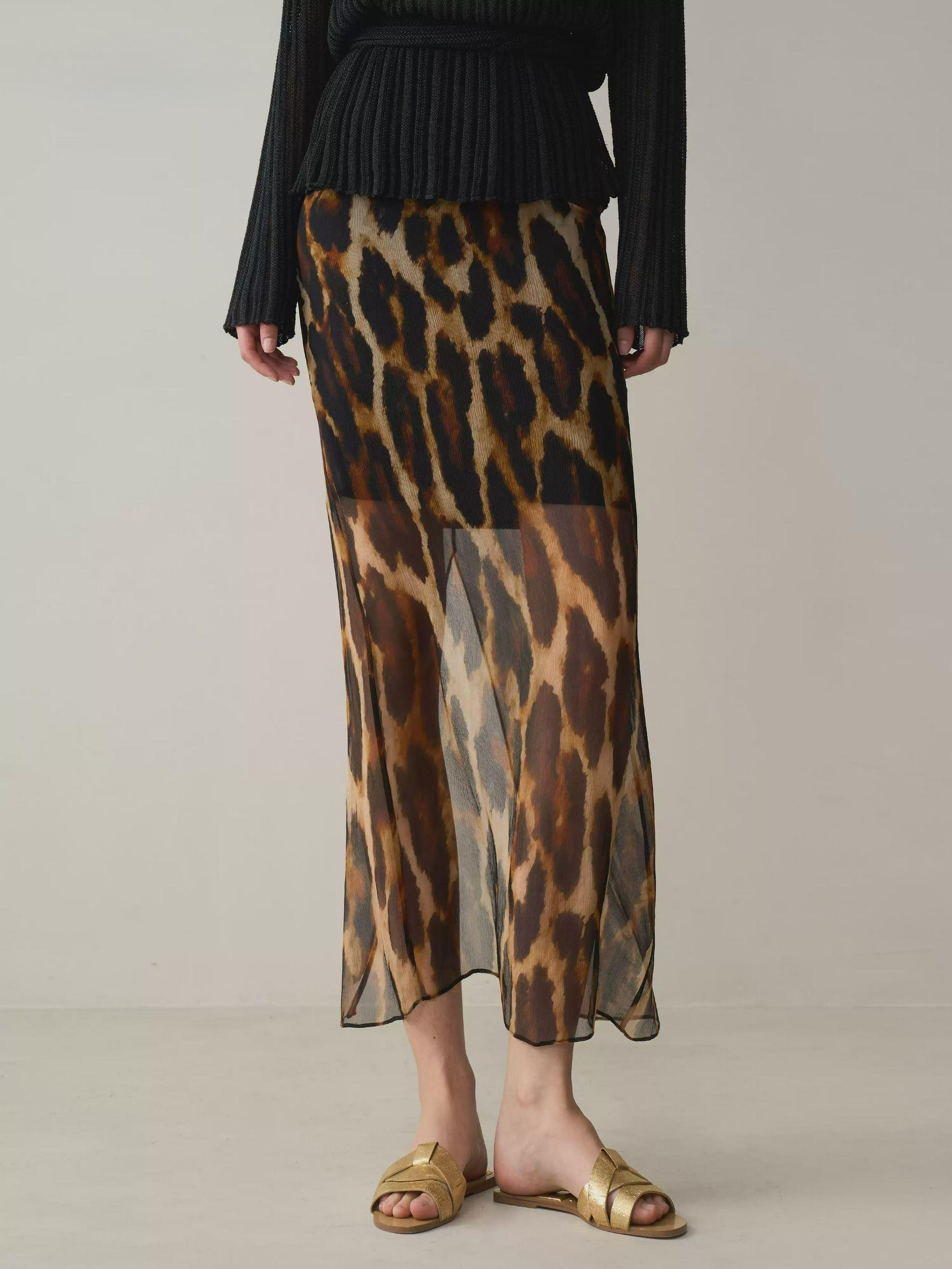 Elevate your look with this effortlessly chic high-waist skirt featuring an eye-catching leopard print crafted from smooth, luxurious silk. Perfect for swinging seamlessly from daytime elegance to evening allure.